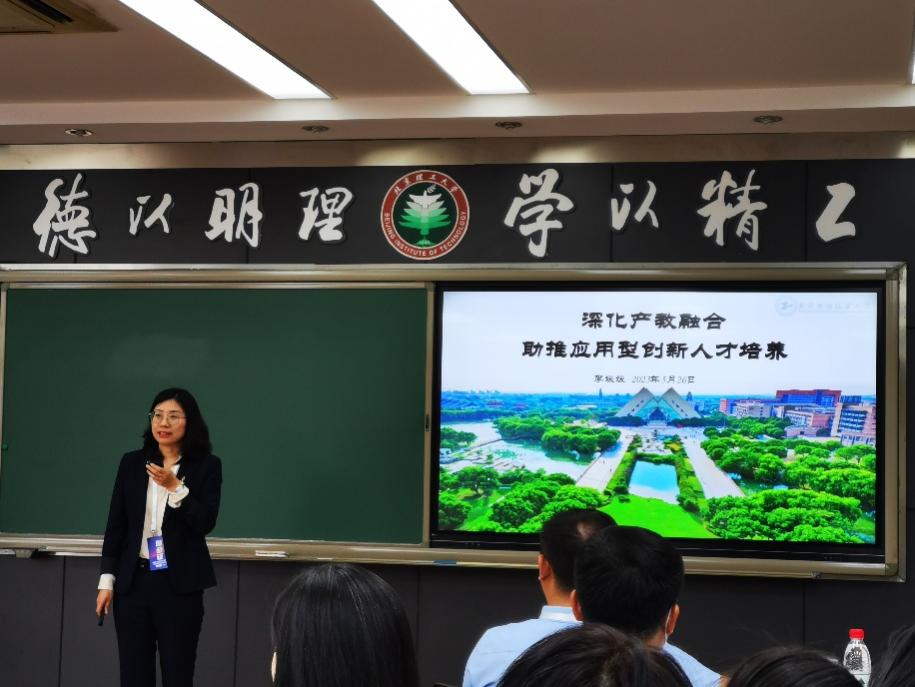 大会主论坛由北京理工大学研究生院常务副院长王军政、副院长刘检华分别主持。我院李媛媛院长作为特邀嘉宾在分论坛一:知识图谱助力一流专业建设作了题为“深化产教融合、助推应用型创新人才培养”的主题报告,李院长以学校产教融合为切入点,阐述我院在学科建设、人才培养、产业学院建设及科学研究等方面进行的数字化改革举措,并重点介绍了我院利用知识图谱助力产业提质增效、利用虚拟教研室和知识图谱助力上海市级重点产业学院建设等方面取得的成果,报告得到了与会嘉宾和参会人员的高度评价。