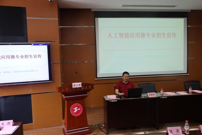 随后的宣讲会中,上海海同信息科技有限公司冯建利专家首先对人工智能微专业、区块链微专业的培养方案进行了介绍。人工智能在安防、医疗、智能客服、自动驾驶等方面具有广泛应用,当前全球人工智能正处于第三次发展浪潮之中。还指出区块链人才的社会需求量大、对口行业广,且行业薪资待遇较高、发展空间较大。