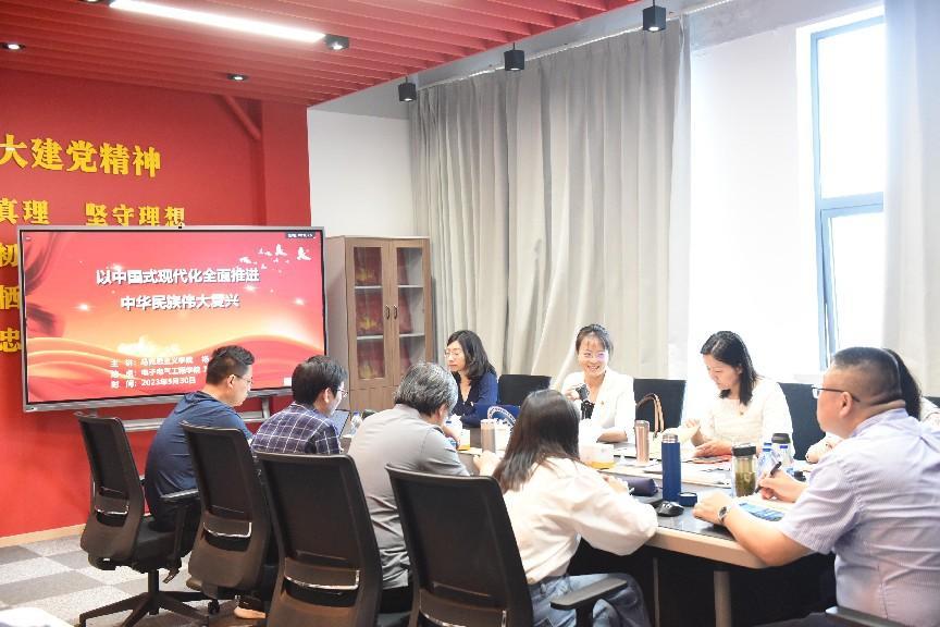 按照学院“学习新思想 奋进建新功”主题教育读书班计划安排,5月30日上午,学院党委在现代交通工程中心7-1003党群E家召开中心组专题学习会,深入学习中国式现代化理论。特邀马克思主义学院杨娟教授以“以中国式现代化全面推进中华民族伟大复兴”为题作专题报告。学院党委委员、党政班子、党支部书记参加学习,会议由学院党委书记范君晖主持。