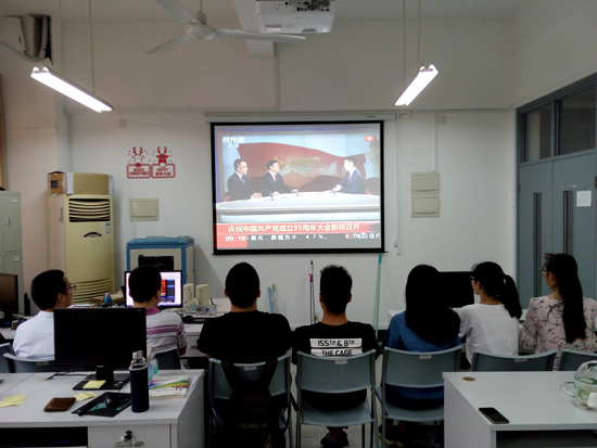 7月1日上午,电子电气工程学院师生党员收看了中央七一大会直播,他们或在学院会议室、在实验室、在实习单位、在家里,聚精会神聆听了大会上总书记的报告。