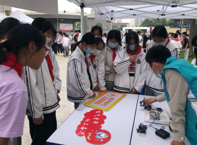 2023年5月12日,学院研究生第二党支部党员科普志愿者带着学院自主研发的人工智能产品走进上海外国语大学松江外国语学校,开展科普系列活动。