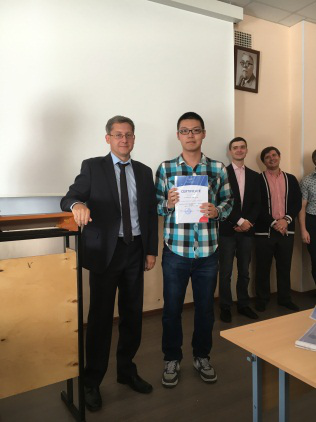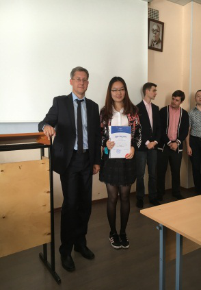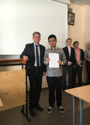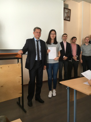 结业仪式上,Alexey教授依次为顺利结业的23位学生颁发结业证书,并且又单独为翁浩杰、韩亦阳等8位取得全5分成绩的学生颁发了优秀学员证书。Alexey教授随后为学生送上祝语,他首先肯定了我校学生两个月里表现出的积极的求知欲望、良好的学习态度和较高的学习能力;又赞扬了我校学生在异国他乡学习和生活过程中具备的较强适应能力;最后他表示,该项目的顺利完成预示着圣光机大学与上海工程技术大学首次开展交流合作的良好开端,希望以后该项目可以持续下去,并谋求更多合作的机会,也祝愿学生能将所学知识应用于以后的学习中,学有所用。