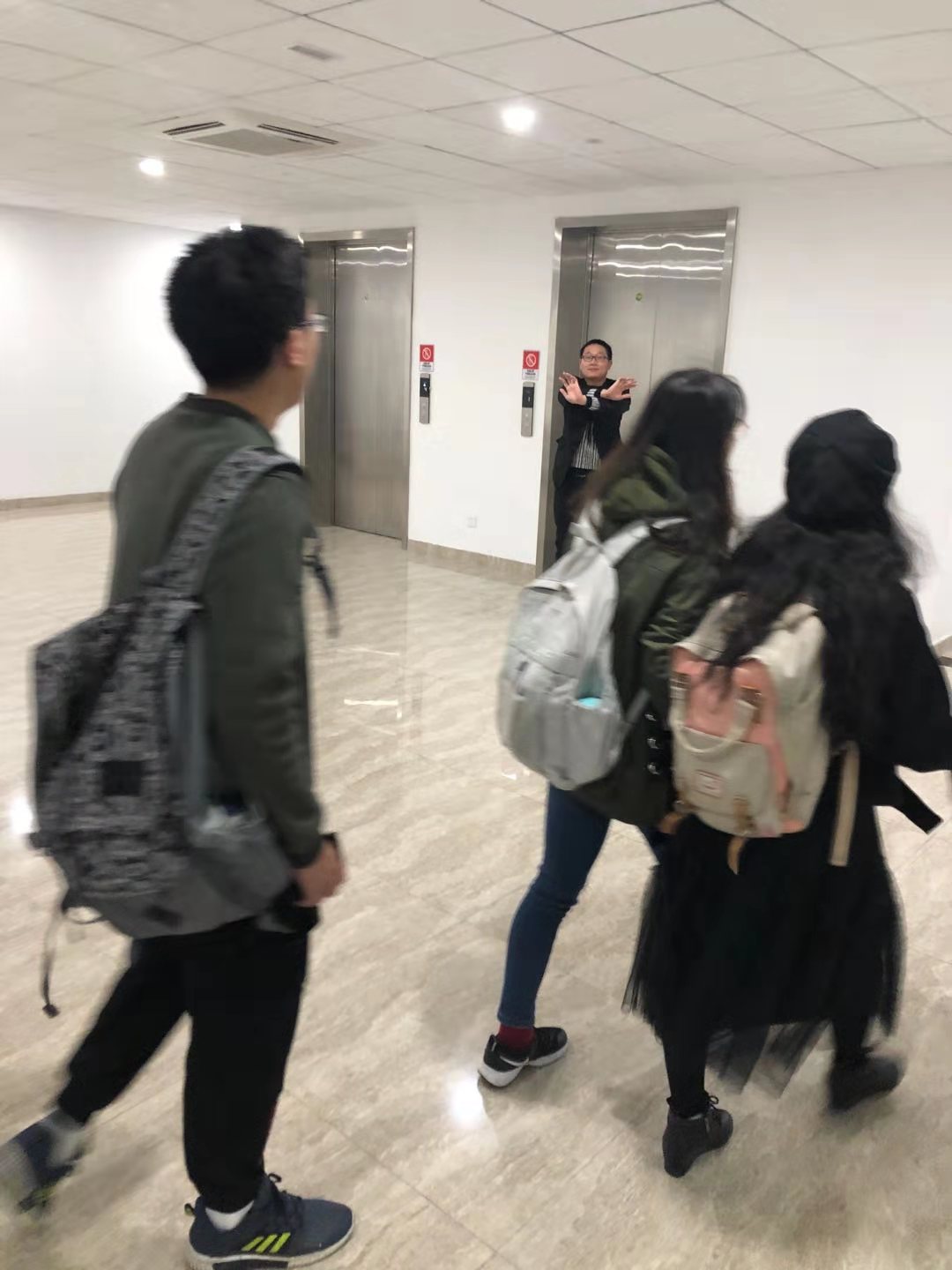 副组长陶祖耀老师先对全体参加演练的师生开展逃生安全教育。9:45分,副组长陶祖耀老师下达了逃生演练开始的命令,教室内的学生立即实施演练方案。在罗中远、王立威老师(疏散引导员)的指挥下,师生不使用电梯,而是从最近的消防通道楼梯进行疏散逃生并在指定集合地点。