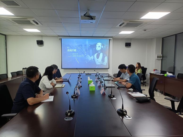 院长李媛媛对达闼机器人一行来院交流表示热烈欢迎,并就学院在教学、科研、研究生等方面的特色做法和相关经验做了分享交流,表示希望双方多加强沟通交流,在多方面开展深入合作。