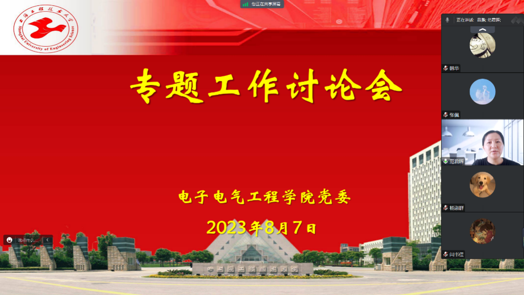 为进一步推进学习贯彻习近平新时代中国特色社会主义思想主题教育走实走深,8月7日上午,学院党委通过线上形式召开党支部专题工作讨论会,就主题教育后续安排、发展党员等工作进行了学习部署。学院党委书记、组织员、党支部书记参加会议,会议由学院党委书记范君晖主持。