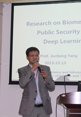 首先由曾国辉副教授介绍了“IT Convergence for Smart City”青年论坛的主题内容及特邀报告人,随后来自天津科技大学的杨巨成教授、河海大学的韩光洁教授、上海交通大学的林巍峣副教授、江西财经大学的方玉明副教授,分别为大家带来了精彩的学术报告。杨巨成教授的“Research on Biometrics for Public Safety and Deep Learning”讲解了在公共安全和深度学习中的生物识别技术,韩光洁教授的“Research on Secure Localization in Underwater Wireless Sensor Networks”介绍了水下无线传感器网络中的安全定位研究,林林巍峣副教授在“Mining and understanding events in crowd scenes”的报告中分享了场景中事件挖掘与理解的最新算法,方玉明副教授在“Perceptual Quality Assessment of Visual Signals”阐述了视觉信号感知质量评价的最新工作进展及后续研究设想。