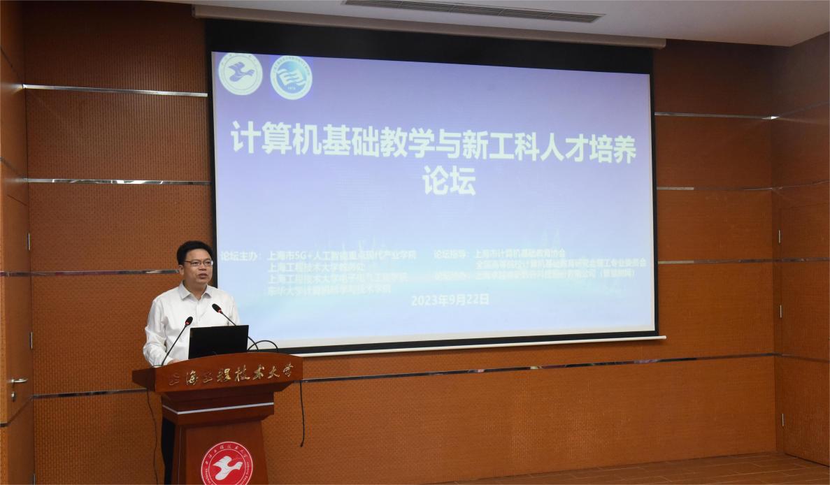 2023年9月22日在上海工程技术大学航飞楼一楼报告厅召开了2023上海工程技术大学计算机基础教学与新工科人才培养论坛。本次论坛由上海市5G+人工智能重点现代产业学院、上海工程技术大学教务处、上海工程技术大学电子电气工程学院、东华大学计算机科学与技术学院主办,上海市计算机基础教育协会、全国高等院校计算机基础教育研究会理工专业委员会指导。论坛旨在持续推进大学信息技术教育,提升师生的计算思维和信息素养,完善大学信息技术教育课程及其资源构建。