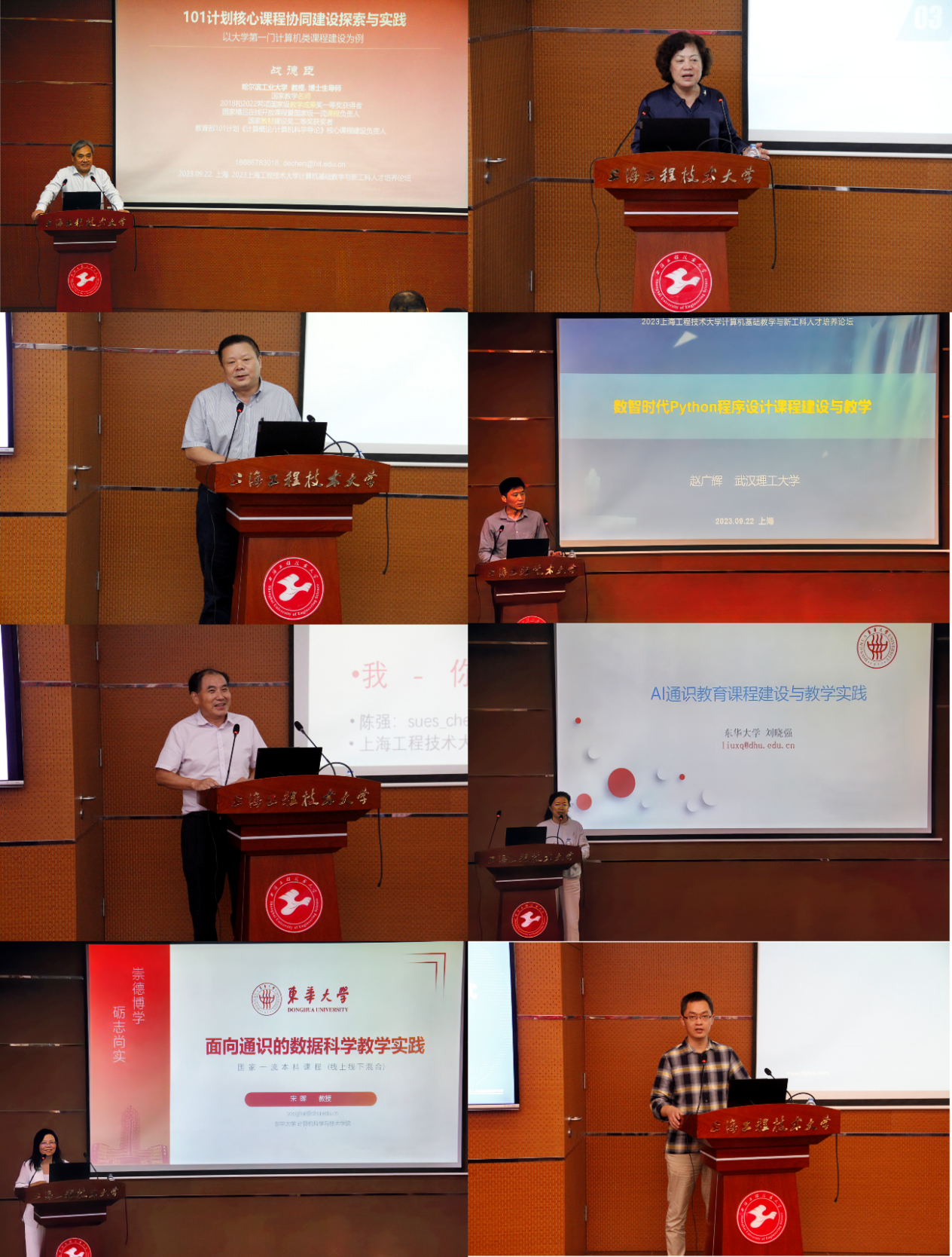 同济大学杨志强教授,武汉理工大学赵广辉教授,上海工程技术大学陈强教授,东华大学刘晓强教授,东华大学宋晖教授,讯飞高教人才培养研究院副院长于俊博士分别以“融合新一代信息技术改革大学计算机课程”、”数智时代Python程序设计课程建设与教学”、“地方工科高校计算思维与信息素养课程体系构建思考”,“AI通识教育课程建设与教学实践”,“面向通识的数据科学教学实践”,“大模型时代背景下的产业人才培养模式实践与探讨”为题进行了论坛报告。从不同课程,不同角度给出了各自所在高校的建设方案和建议,给大家带来了非常先进的教学理念和方法。