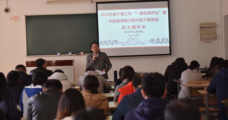 12月6日下午,学院在教学楼C311召开班子测评、党委委员测评暨科级干部一报告两评议会议,学院班子成员,党委委员,工会主席,系、室、中心主任(副主任),党支部书记,校党代会代表,校教代会代表,院教代会代表和学生代表参加了会议,学校巡察组成员列席会议,会议由学院党委书记段海霞主持。
