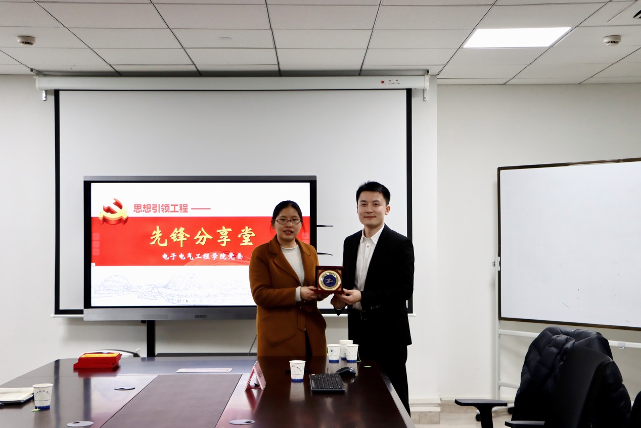李春辉同志为中共党员,本科毕业于上海工程技术大学自动化(汽车电子)中美合作专业,硕士毕业于澳大利亚国立大学信息系统和通信专业,目前是澳大利亚国立大学在读博士生,IEEE 期刊以及相关会议审稿人。2008年考入我校,曾任我院学生会主席、学生党支部书记,2012年荣获“上海市普通高等学校优秀毕业生”称号。他从低时延超高可靠通信相关的学习与研究出发,在低时延超高可靠通信在5G及后续技术的应用、蜂窝网络的延迟、低时延和超高可靠性的新方法、自身的研究成果四个方面做了报告,内容丰富,深入浅出,同时还将个人学业发展体悟、学术研究思考等内容融入分享堂中,语言催人向上,报告精彩不断,赢得热烈掌声。在交流讨论环节,同学们非常好奇,李春辉校友在校期间不仅成绩优异,还担任支部书记等工作,是如何做好时间分配的。李春辉从时间管理和自我管理的角度为大家进行了解答,引发同学们对大学学习和生活的思考。在报告结束后,院党委书记段海霞为李春辉颁发了纪念品。