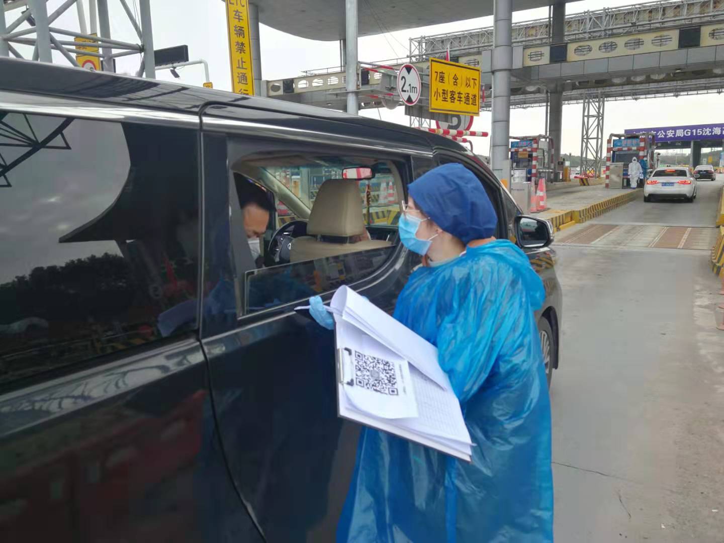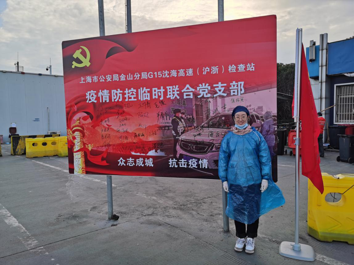 17级大数据科学专业卫宇娇同学告诉我们“当我抱着热切的期待加入金山区防控志愿者储备队之后,真切感受到了人民众志成城的力量,十几个人的志愿名额几百人在争抢,大家都想在疫情中贡献自己的一份绵薄之力,十分幸运,我“抢”到了一个名额。”她的任务是在G15高速道口查看车辆上的人数及人员的身份信息,倘若乘坐者来自湖北或途径湖北的,进行记录,并引导他们进行二次检查。由于物资紧缺,没有足够的防化服,只能暂时使用雨衣代替。