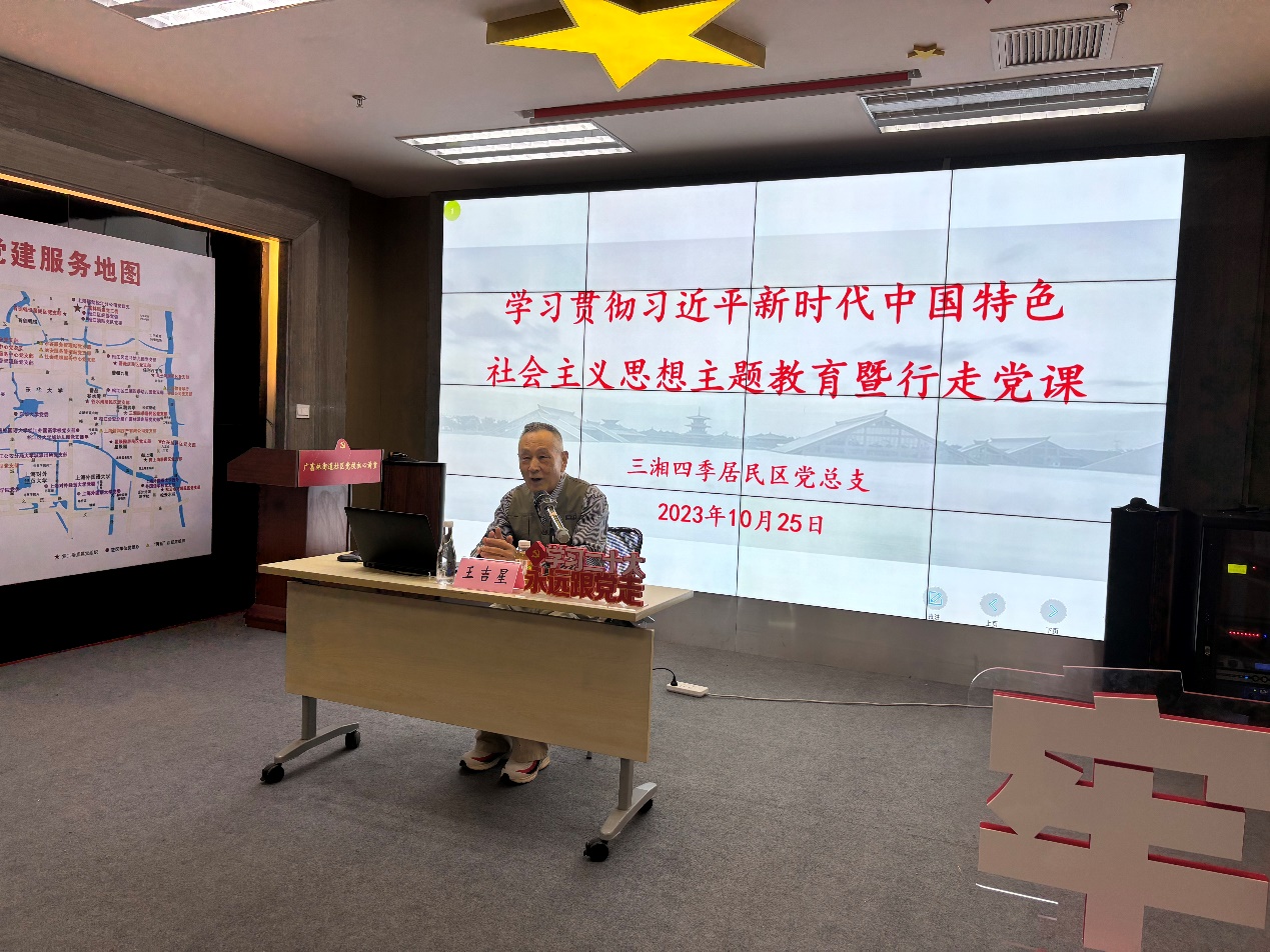 本次主题党日伊始,师生党员齐聚在广富林街道党群服务中心集中学习社区党员王吉星老师带来的精彩党课——“楼上楼下电灯电话”到“中国式现代化”。王老师退休前为上海核工程研究设计院工程师,他结合自身的丰富经历,从建国后70多年工业化历程讲到我国2035、2050年全面建成社会主义现代化强国作出“分两步走”总的战略安排,为师生党员擘画了第二个百年奋斗目标的美好图景。师生党员被王老师离岗不离党,带头传播党的好声音深深打动,大家纷纷表示愿意学习老党员的优秀做法,后续在学校、在联建单位等多个场域开展党员“微宣讲”,将党的好声音传递给更多的社会群体,以实际行动服务联建共建单位党建工作。