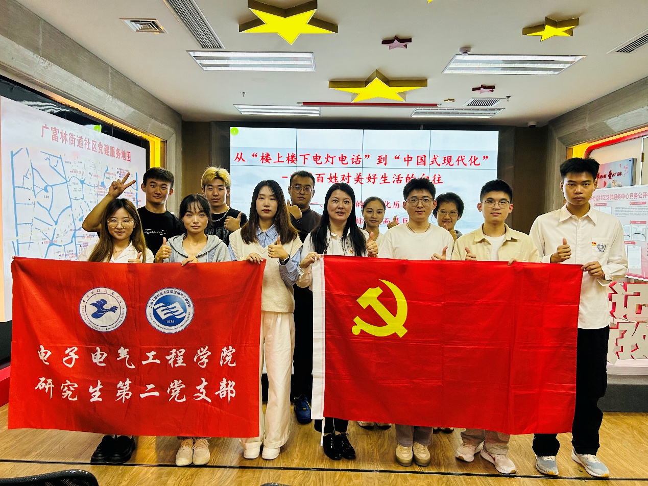 为继续深入贯彻党的二十大精神,10月25日,电子电气工程学院研究生第二党支部与联建单位三湘四季居民区党支部(习近平新时代中国特色社会主义思想主题教育第二批单位),带领党员先后前往广富林街道党群服务中心、金山和平村水果公园实践基地(2007年时任上海市委书记习近平在金山调研时做出“三个百里”的重要承载地)、金山廊下镇中华村农家画廊(2022年《金山“三个百里”图》亮相党的二十大),开展有意义的主题党日——“移动式课堂、流动式讲解、行走的党课”。
