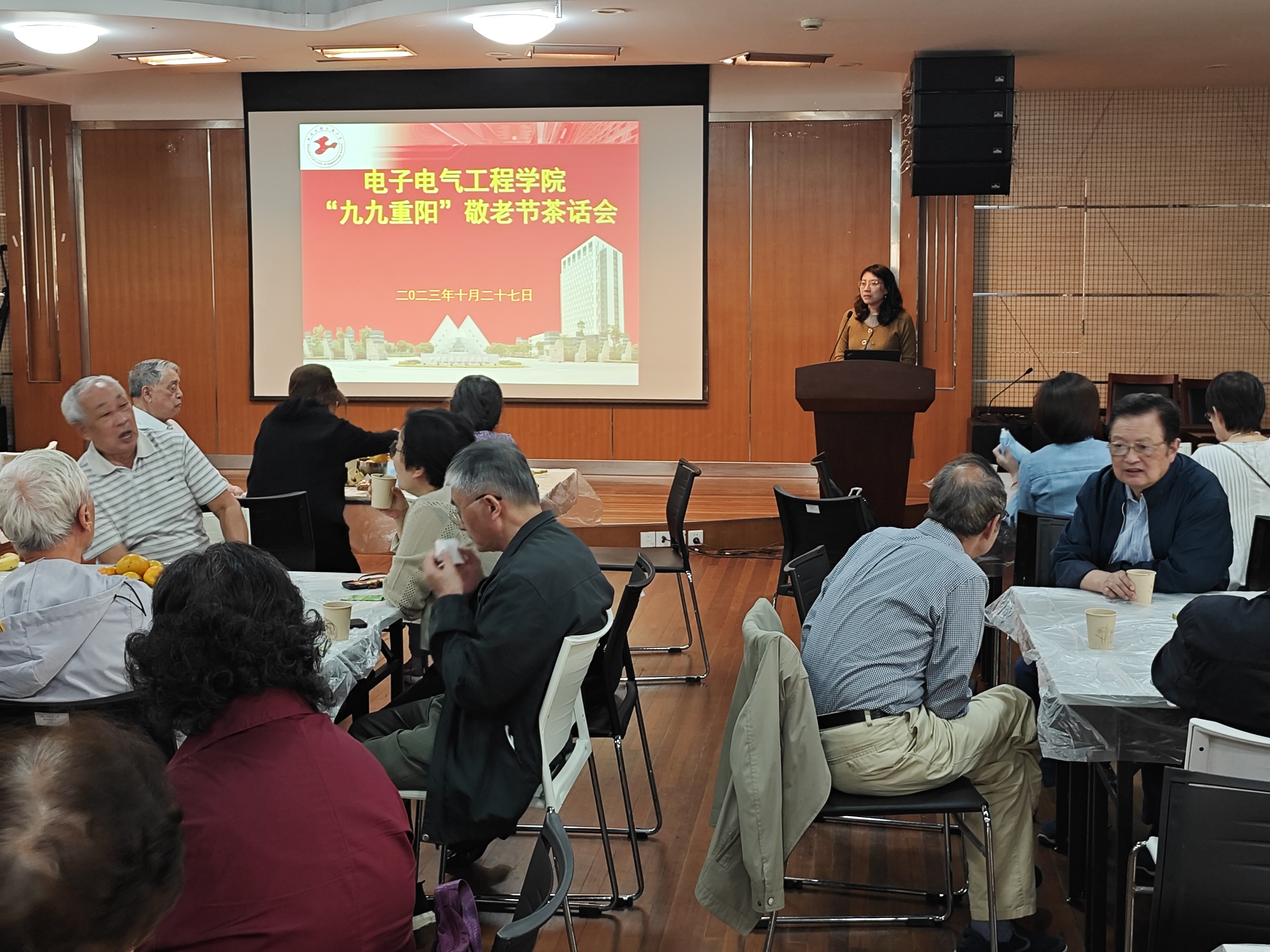 2023年10月27日下午,在第36个敬老节暨九九重阳节到来之际,学院工会在学院党政领导的支持下,在长宁校区综合楼5楼多功能厅举行了“学习二十大,九九颂重阳”敬老节活动,学院有将近50位退休教师参加了此次活动。学院党委书记范君晖、党委副书记、院长李媛媛、院工会主席施一萍以及部分院工会小组长们也参加了茶话会。会议由范君晖书记主持。
