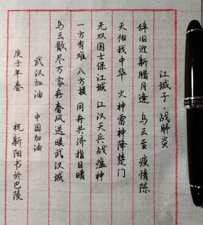 湖北省武汉市发现并蔓延的新型冠状病毒感染肺炎疫情牵动着全国人心,电院广大师生们守望相助、众志成城,坚决贯彻习近平总书记关于新型冠状病毒感染的肺炎疫情防控工作重要指示精神和学校关于疫情防控的工作部署,他们有的主动请缨参加疫情防控志愿者工作,更多的师生们都积极响应国家号召在家自行隔离,除了关注疫情动态,大家自发参加了“我为武汉加油助威写祝福活动!”以书法、钢笔字、漫画、诗歌、海报或手持自制祝福文字、卡片的照片等送武汉,通过暖心手写(绘)祝福,透过文字或图片提供力量,把祝福带给在抗疫第一线奋战的医护人员和在武汉的全体同胞,凝聚众志成城抗疫情的强大力量为武汉加油!