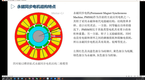 紧接着,郑磊硕士介绍了关于“基于磁链管恶气的表贴式永磁同步电机控制技术研究”的研究方向。他深入解释了表贴式永磁同步电机的工作原理以及磁链管的应用,展示了课题组在电机控制技术方面的研究成果。