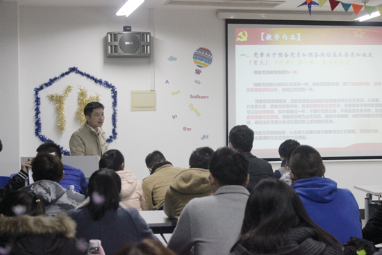11月24日晚17:00,上海工程技术大学第十一期预备党员培训班第一课在实训楼4405由化学化工学院的殷昊老师正式开讲,他的课程主题为《正确认识和对待共产党员预备期》。来自电子电气工程学院、化学化工学院和管理学院三个学院的全体预备党员以饱满的热情、积极的态度聆听了本次课程。