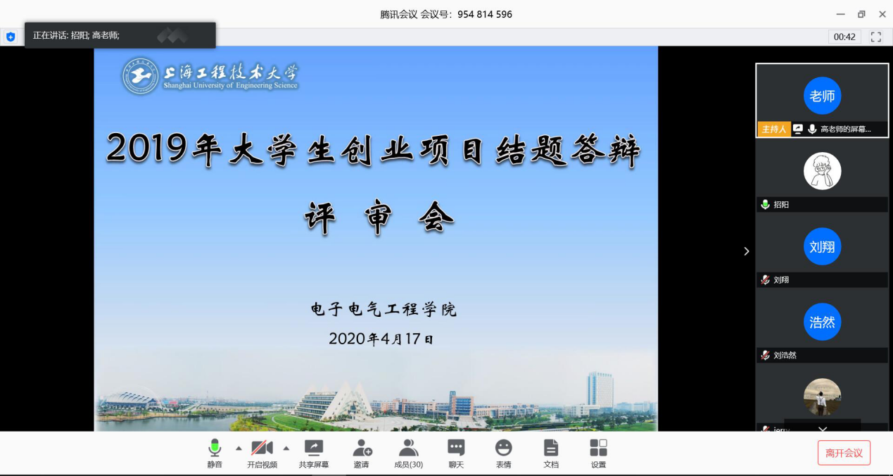 线上创业答辩,云端延续指导。为了在疫情期间保质保量做好学院大学生项目的创业结题指导工作,2020年4月17日下午,学院通过腾讯会议平台积极组织召开了线上《2019年度创业项目结题答辩评审会》。此次评审会得到了学院领导的支持和同学们的广泛关注。本次结题工作由学院学生工作办公室统一协调,学院青年创业俱乐部具体组织,创业指导老师高艳杰主持会议。