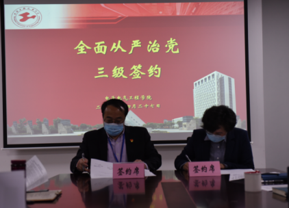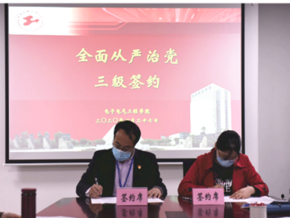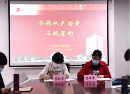 最后,党委书记与党委副书记、支部书记代表、工会主席,院长与副院长签约、系(室、中心)主任代表签署了《电子电气工程学院2020年全面从严治党责任书》。