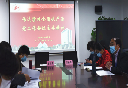 会上,党委书记段海霞传达了李江书记《在2020年学校全面从严治党工作会议上的讲话》,进一步明确了管党治党的要求,以及党建和中心工作融合的要求,号召学院中层干部要强化全面从严治党主体责任意识,强化标本兼治,加强学习,强化政治建设,不断巩固和深化“不忘初心、牢记使命”主题教育成果,“四责协同”、“一岗双责”机制落地落实,用奋斗和担当促进学院内涵建设和特色发展,为学院转型发展提供坚强的政治保证、组织保证、思想保证和纪律保证。