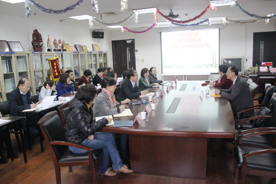 胡教授首先听取了学院领导班子的学院建设情况汇报,并与班子成员进行学科规划、平台课程、教学理念、国际视野等方面的交流。随后胡教授与六位青年教师进行了关于激励计划、科研团队、教学工作等方面的交流。座谈过程中,胡教授对学院近几年的发展和成就给予了肯定,也指出学院面临的一些问题,并对未来的学科发展给予了指点。