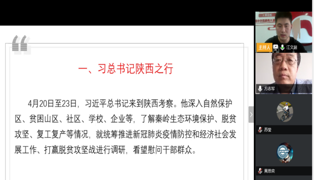 本科生党支部分别开展了题为“缅怀先烈奋进精神,践行新时代爱国行动”、学习西迁精神等主题的党组织生活,教育同学们要珍惜现在,努力学习。研究生党支部对习总书记G20讲话:《携手抗疫 共克时艰》、维护国家安全、毕业生科研经验交流等主题进行了学习和交流。支部书记们还就工作中遇到的困难提出了自己思考的解决方法。