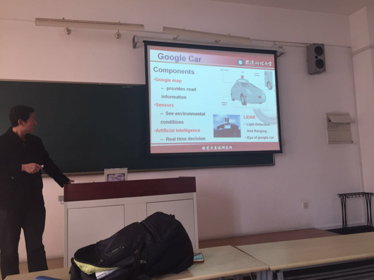 12月16日和12月19日, 楚天学者、武汉科技大学伍世虔特聘教授作为我校的校级海外名师分别在教学楼E407和B102为电子电气工程学院的研究生讲授机器学习和人工智能的相关课程。课程由钟伯成教授主持,学院部分教师也有幸旁听了两次的课程。