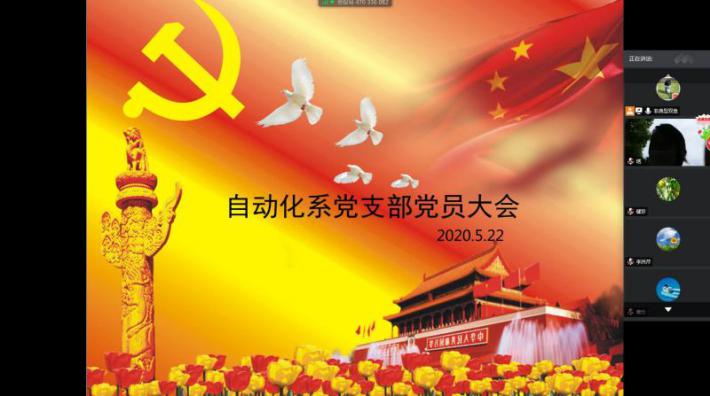 2020年5月22日,自动化系党支部通过腾讯会议平台召开了支部党员大会。此次会议主要包括三项议题:“三会一课”学习及支部管理规章制度(草案)和党支部党员评优考核办法(草案)的讨论与表决,自动化系党支部与上海外国语大学松江外国语学校第二党支部共建活动汇报及后期活动讨论。