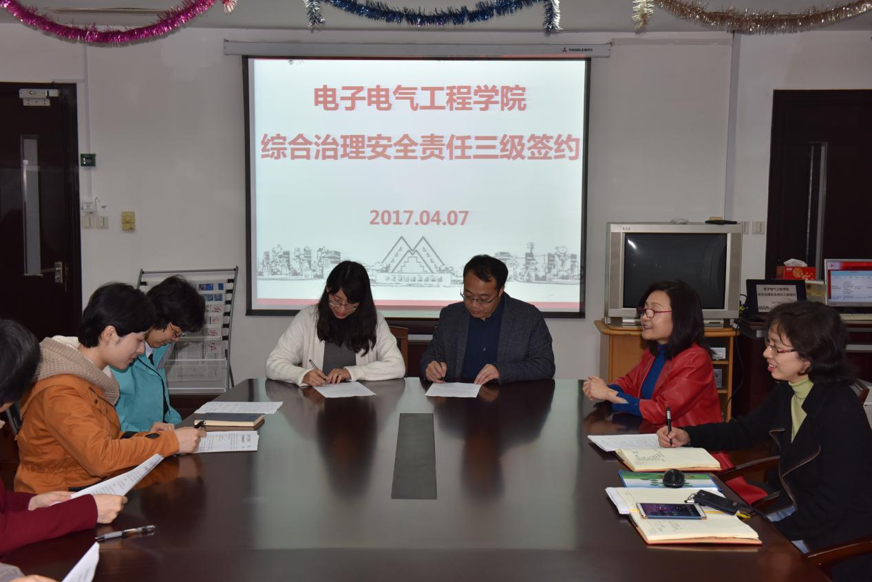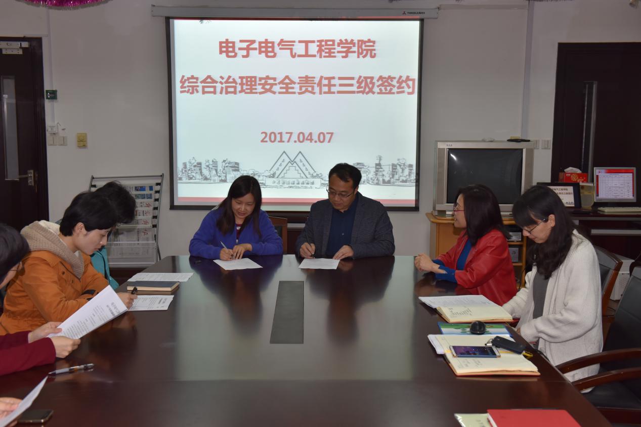 为深入贯彻安全维稳综合治理工作相关规定,根据学校的要求,4月7日中午,电子电气工程学院在行政楼912开展综合治理安全三级责任签约,学院党政班子成员、各系室主任和支部书记参加了会议并进行签约。