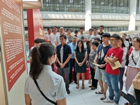 9月17日,电子电气工程学院党委书记电学基础党支部联络员段海霞和电学基础党支部全体党员,集中前往图书馆二楼参观“红色的足迹,行进的伟业——上海市教育系统庆祝中华人民共和国成立70周年主题巡展”暨遵义会议纪念馆主题展览,接受党史教育。 此次展览以红军长征为主线,重现中国共产党如何独立自主的运用马克思主义原理解决自己的路线、方针等政策问题,如何妥善处理党内长期存在的分歧和矛盾,最后如何挽救了党,挽救了革命等从死到生的转折。 参观期间,随着讲解员抑扬顿挫的声音,“倦马腾空驱劲敌,残阳滴血铸丰碑”等一幕幕在飞夺泸定桥、娄关山战役、四渡赤水等重要战役中坚韧的革命精神展现的大家面前。 参观结束后同志们表示,此次主题党日活动,重温革命历史使自己心灵得到再一次洗礼,我们要不忘守护初心、勇于担当使命。(田瑾)