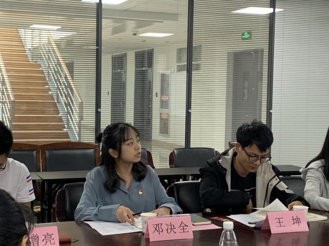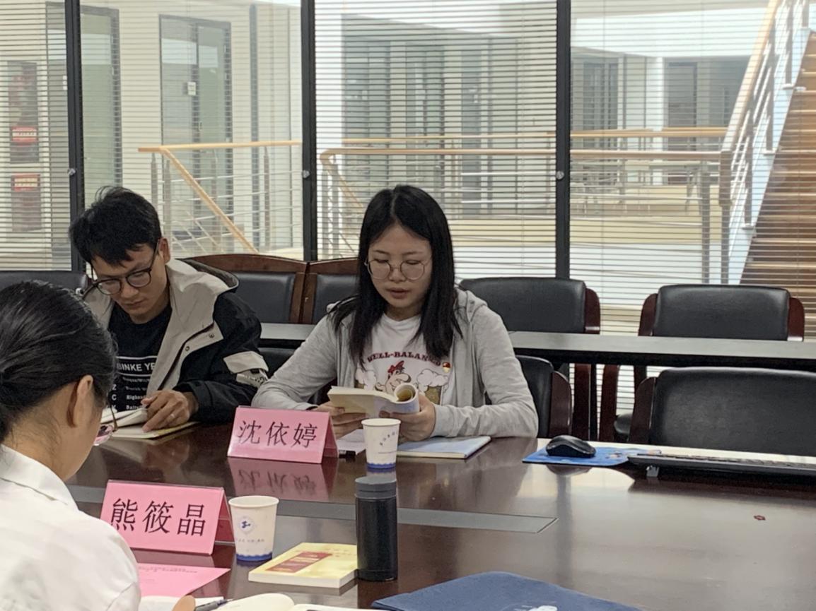 本次读书交流书目为《习近平新时代中国特色社会主义思想学习纲要》,读书会中,支部书记苏莹首先介绍了支部基本情况和主题教育开展情况,读书会采用支部党员“领读人分享+观察员点评”的互动式交流模式,交流发言同志先诵读原文1-2段后,就担当作为、党性修养、理想信念、宗旨性质四个专题,进行了主题分别为“新时代需要青年勇于担当”、“新时代青年党员如何提高自身党性修养”、“坚定理想信念·青春砥砺前行”、“肩负责任使命·提升宗旨意识”的发言,同学们结合自身的学习经验、科研发展及志愿者经历等,表达了自己作为新时代的青年党员应该勇于担当,主动提高自身党性修养,更要坚定理想信念,坚定中国共产党人的初心和使命,为中国人民谋幸福,为中华民族谋复兴。
