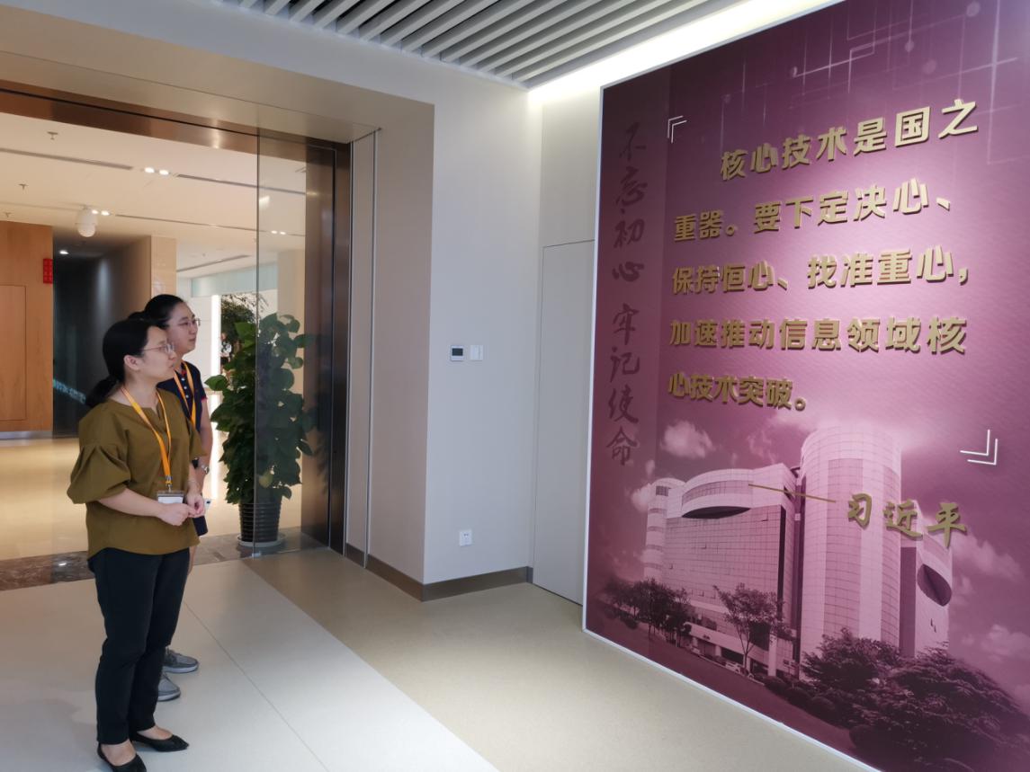调研中黄中俊书记介绍了公司在第一批开展的“不忘初心、牢记使命”主题教育中做法和经验,从如何上好党课,如何丰富学习形式,如何开展调研的等几方面介绍了公司的做法。随后,双方就贴近企业需求开展人才培养,挖掘企业思政育人资源丰富学生思政教育等方面进行了研讨,以促进“育德”和“育能”有机结合,提升育人实效。调研结束后参观了华虹集团展厅。