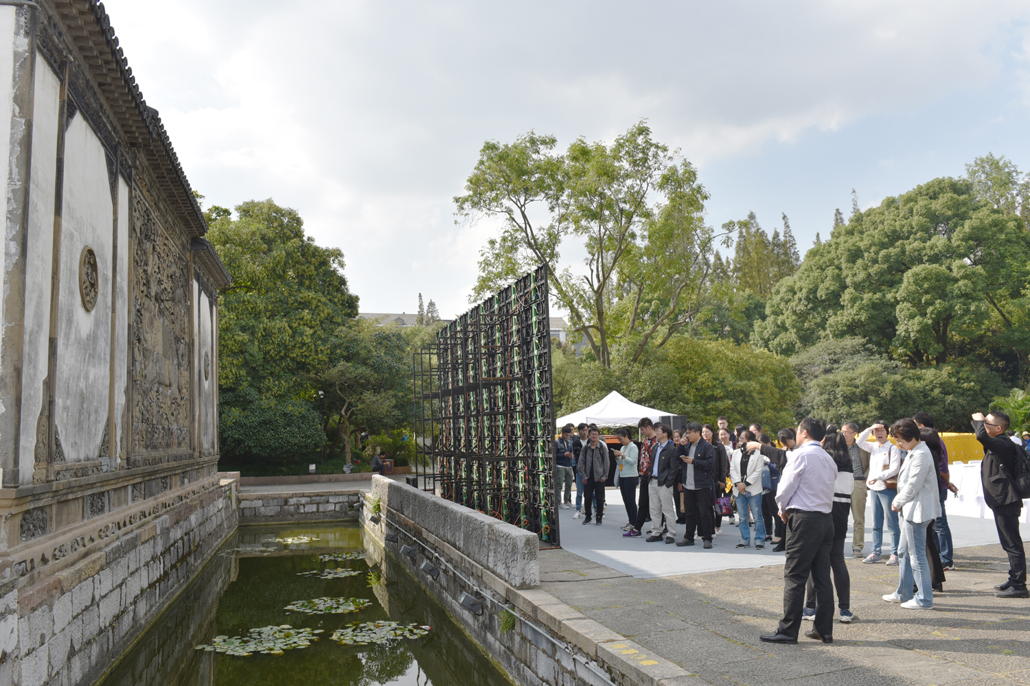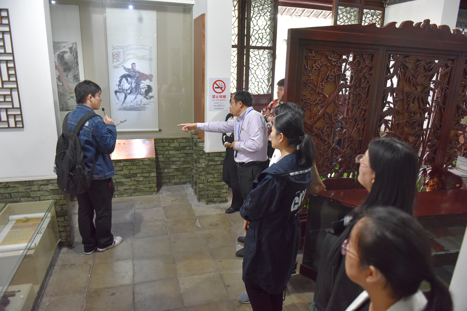 大家重点参观了方塔园中的照壁,学生党员讲解员的生动讲解让大家了解到传说动物“犭贪”的寓意。随后大家认真聆听了“厉廉堂”中古今松江的廉政人物的故事,了解“其昌廊”里“廉政文化墙”的廉政人物和事迹。
