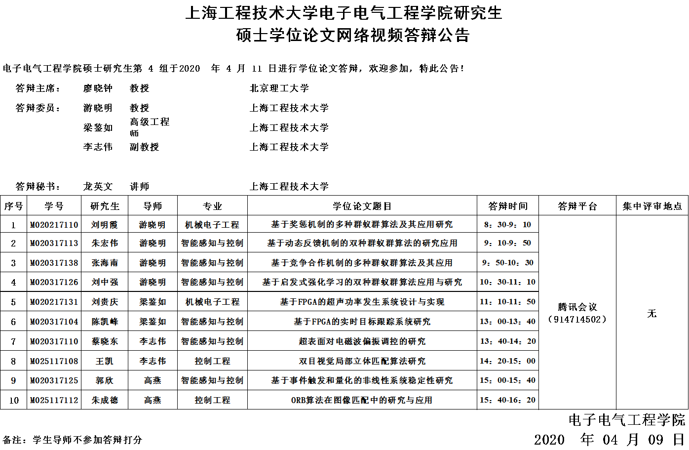 电子电气工程学院2020年4月11日第4组网络视频答辩公告