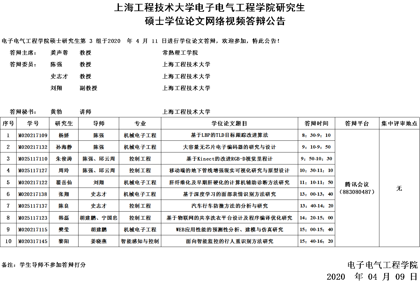 电子电气工程学院2020年4月11日第3组网络视频答辩公告